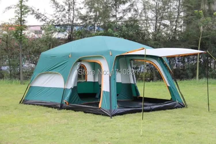 ORIGINAL Ultralarge 6 10 12 double layer outdoor 2living rooms and 1hall family camping tent