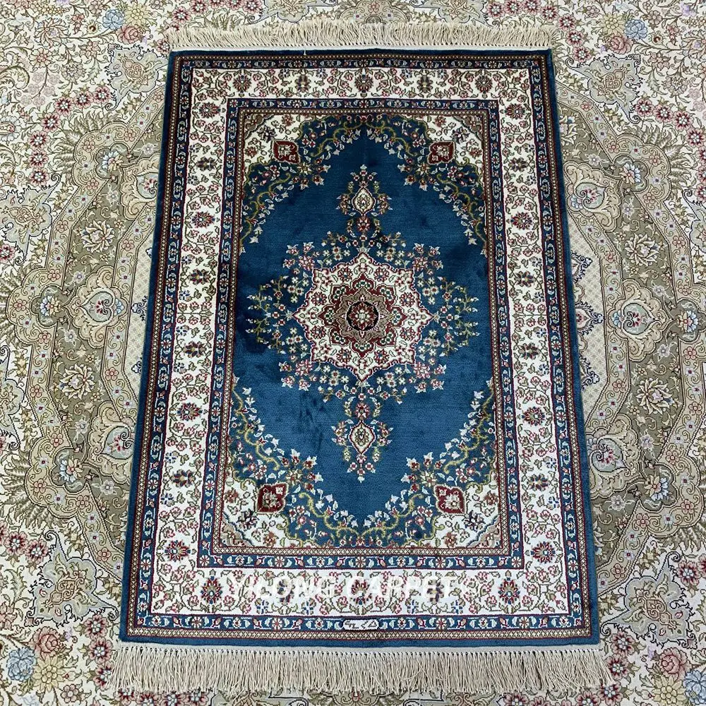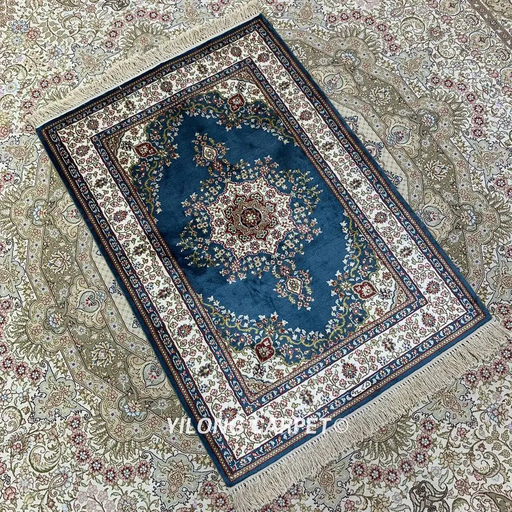 HOT SALE Yilong 2'x3' Hand Knotted Persian Carpet Turkish Blue Medallion Silk Rug (HF138B)
