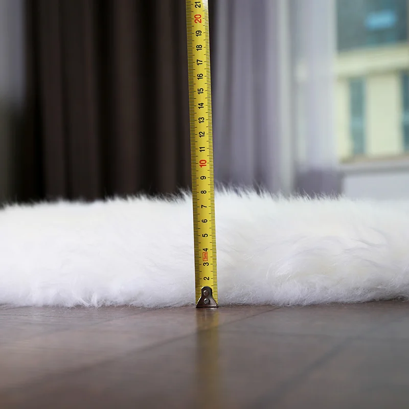 AOZUN round premium australian sheepskin rug tailored size fur carpet for cloak room white step doo